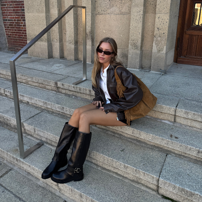 Zacht suède en hoogwaardig leer vormen de basis, uitgevoerd in diepe bruintinten, warm burgundy en klassiek zwart. Pony hide en leopard geven de collectie een spannende twist, terwijl warme knits en fur statements in accessoires zorgen voor comfort en een vleugje luxe.