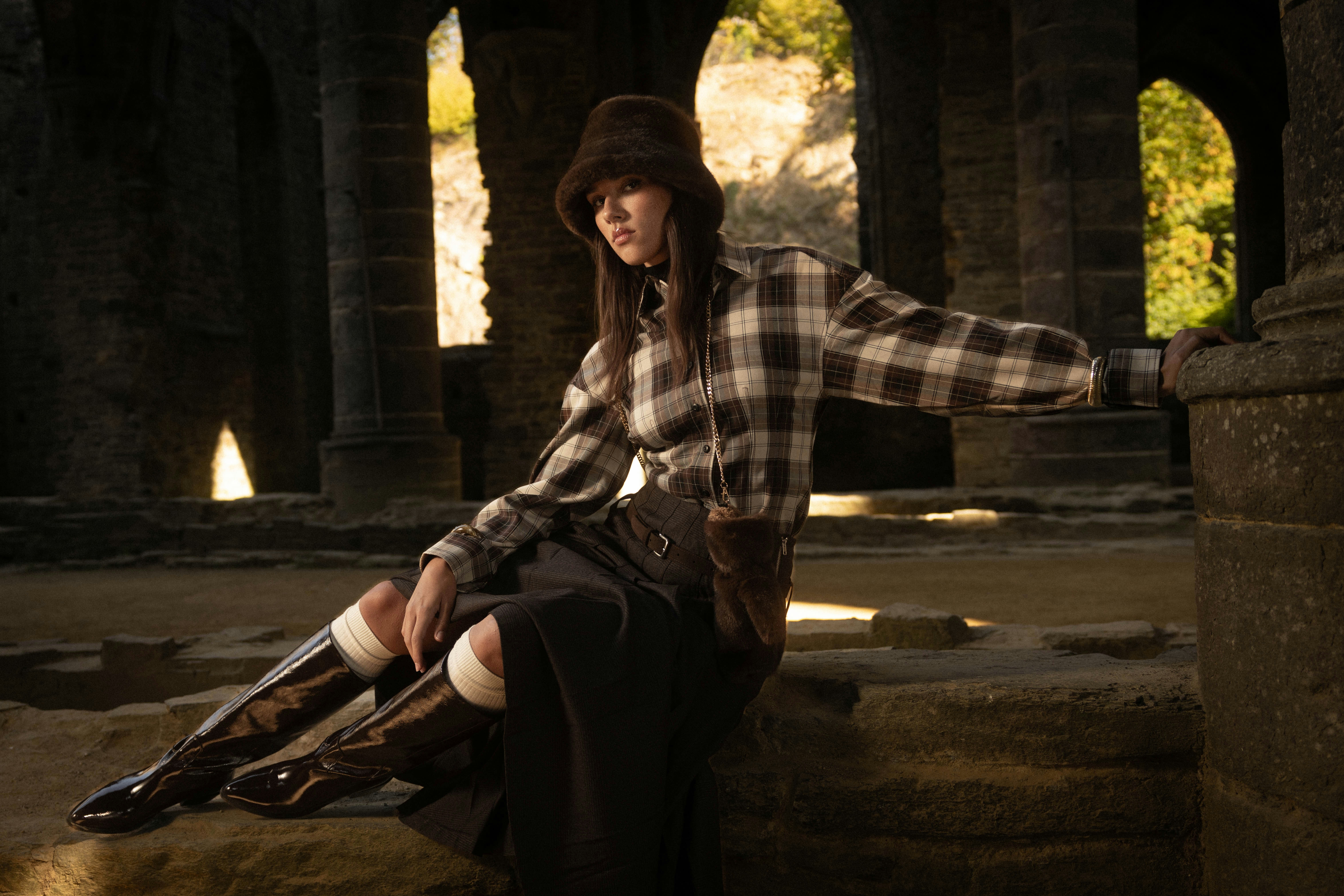 De campagne is geschoten in een verlaten abdij in Villers, waar verweerde stenen muren en gefilterd winterlicht het perfecte decor vormen voor het spel tussen stoer en verfijnd. Hier komt Raw Elegance tot leven. Schoenen en accessoires waarin eenvoud en vakmanschap samensmelten met rijke details en karaktervolle texturen.