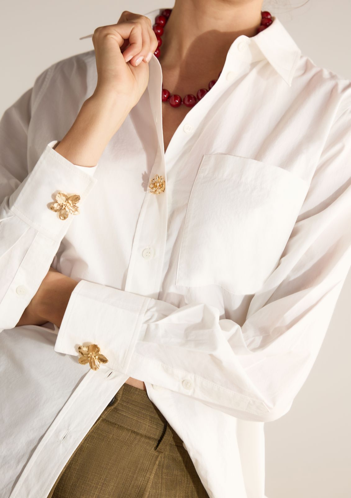 3-Pack goudkleurige bloemen buttons van Manfield. De buttons schuif je op de knopen van je blouse voor een extra touch.