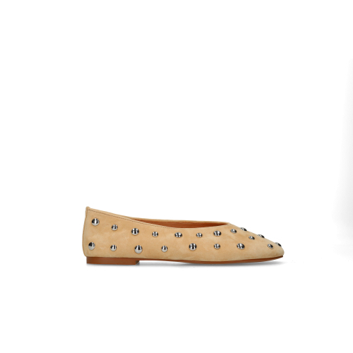 Beige suède ballerina's met zilveren studs