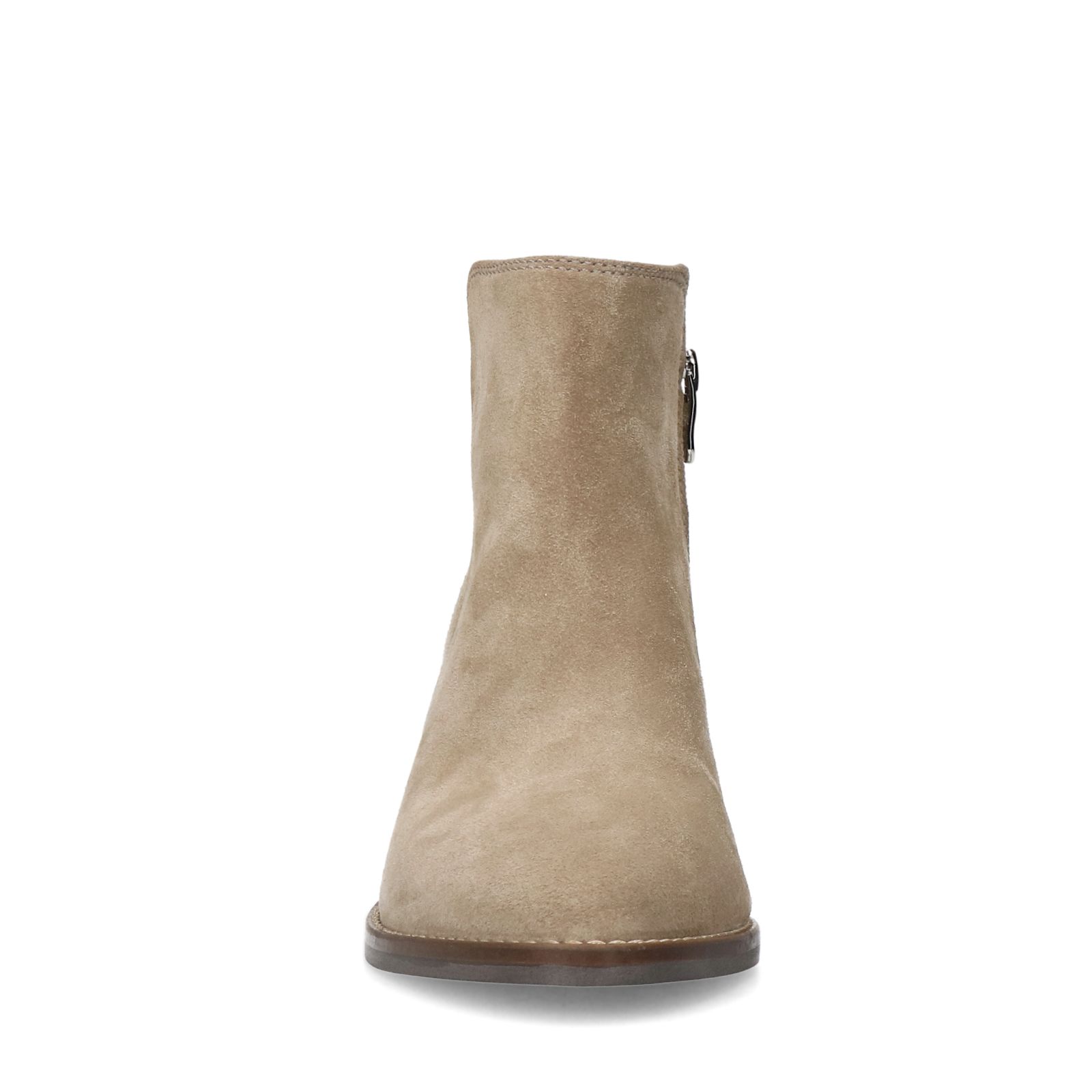 Beige suède enkellaarsjes met hak van Manfield, met hak van 6 cm en ritssluiting aan de binnenzijde. We adviseren als verzorging en bescherming de suède/nubuck spray in transparant.