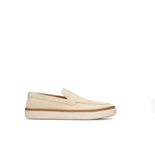 Beige suède loafers van No Stress. De loafers hebben een witte zool van 2 cm en een memory foam voetbed. We adviseren als verzorging en bescherming de suède/nubuck spray in transparant.