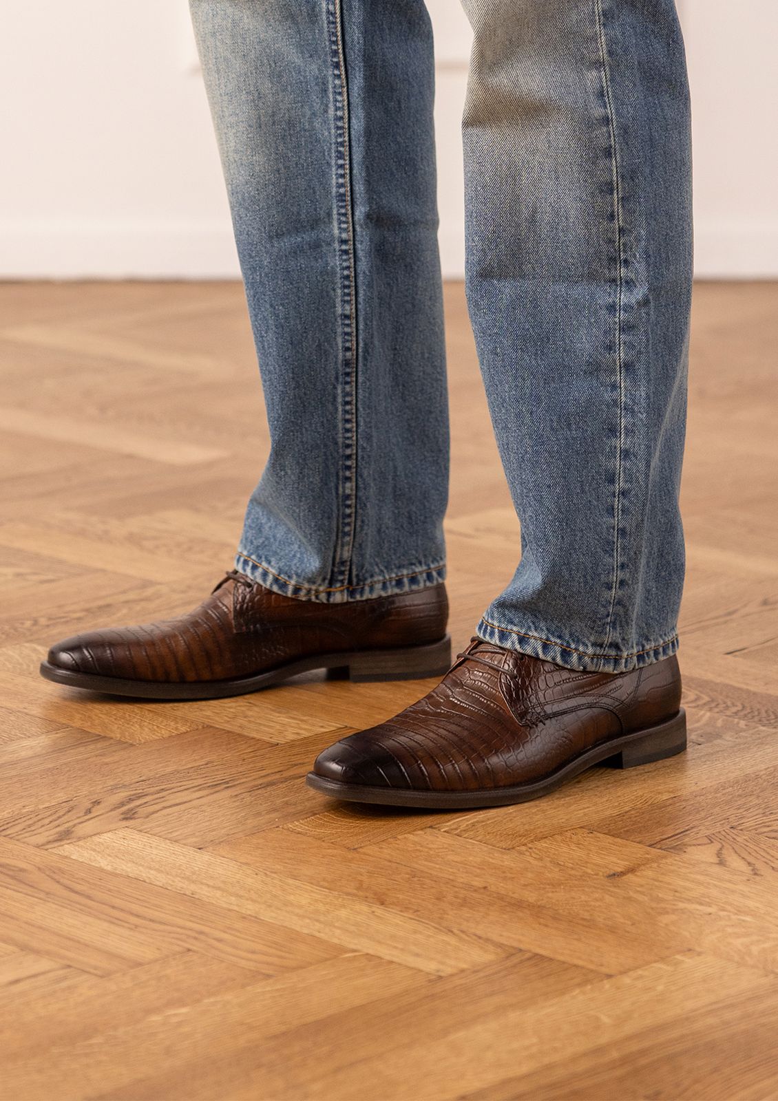 Bruine leren croco veterschoenen