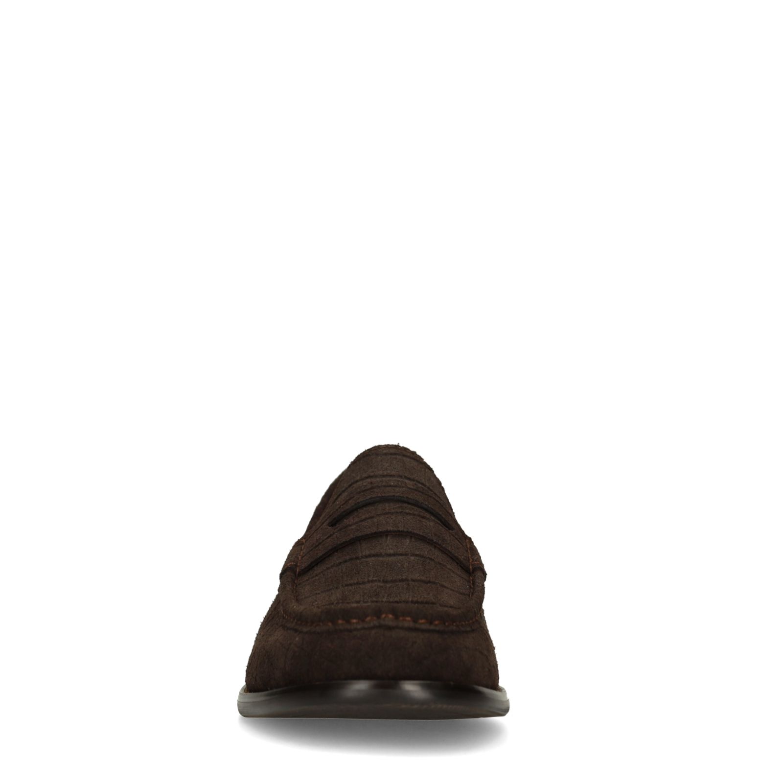 Bruine suède loafers met crocoprint van Manfield met een platte hak van 2 cm. We adviseren als verzorging en bescherming de suède/nubuck spray in transparant.