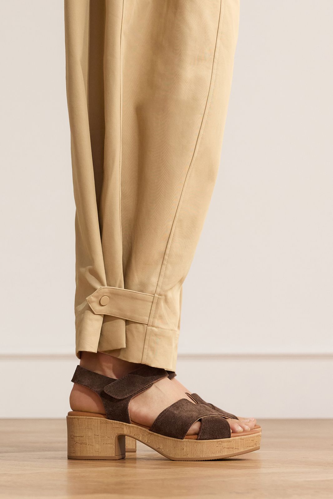 Bruine suède sandalen van Manfield. De sandalen hebben een blokhak van 6 cm en een klittenband sluiting rondom de enkel. We adviseren als verzorging en bescherming de suède/nubuck spray in transparant.