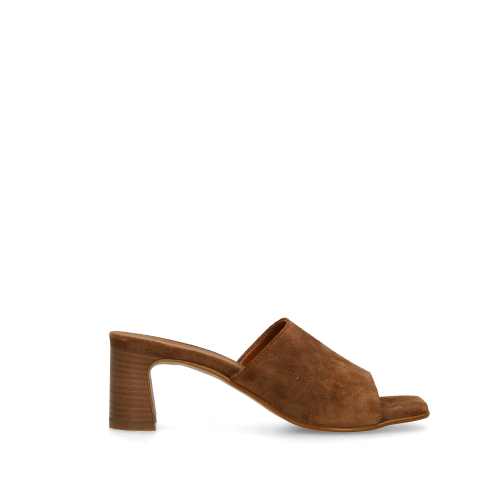 Bruine suède sandalen met hak van Manfield met blokhak van 6 cm. We adviseren als verzorging en bescherming de suède/nubuck spray in transparant.