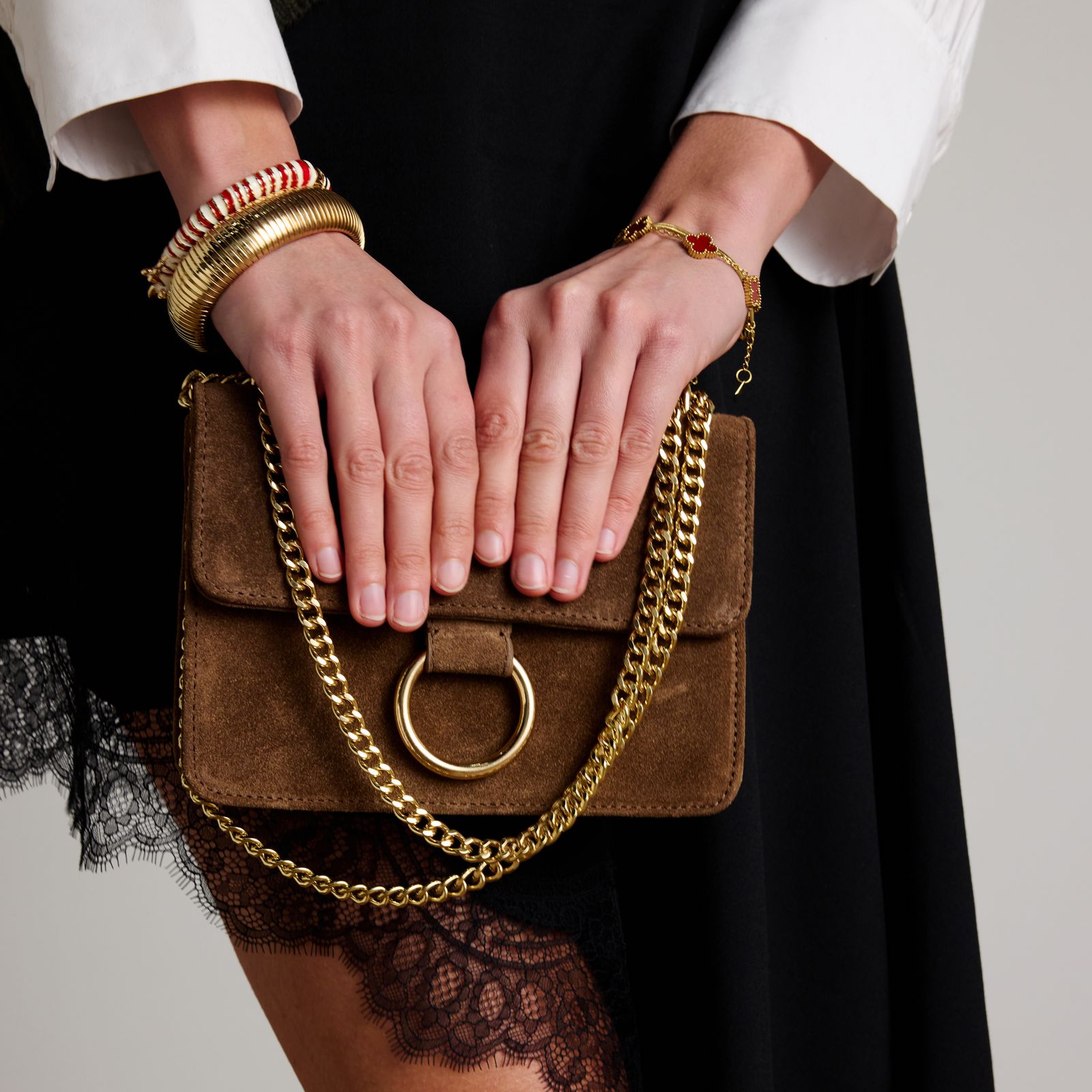 Bruine suède schoudertas van Manfield. De afmeting van deze tas is 20x16x6 cm (BxHxD), voorzien van een drukknoop sluiting en een schouderband van 135 cm. We adviseren als verzorging en bescherming de suède/nubuck spray in transparant.
