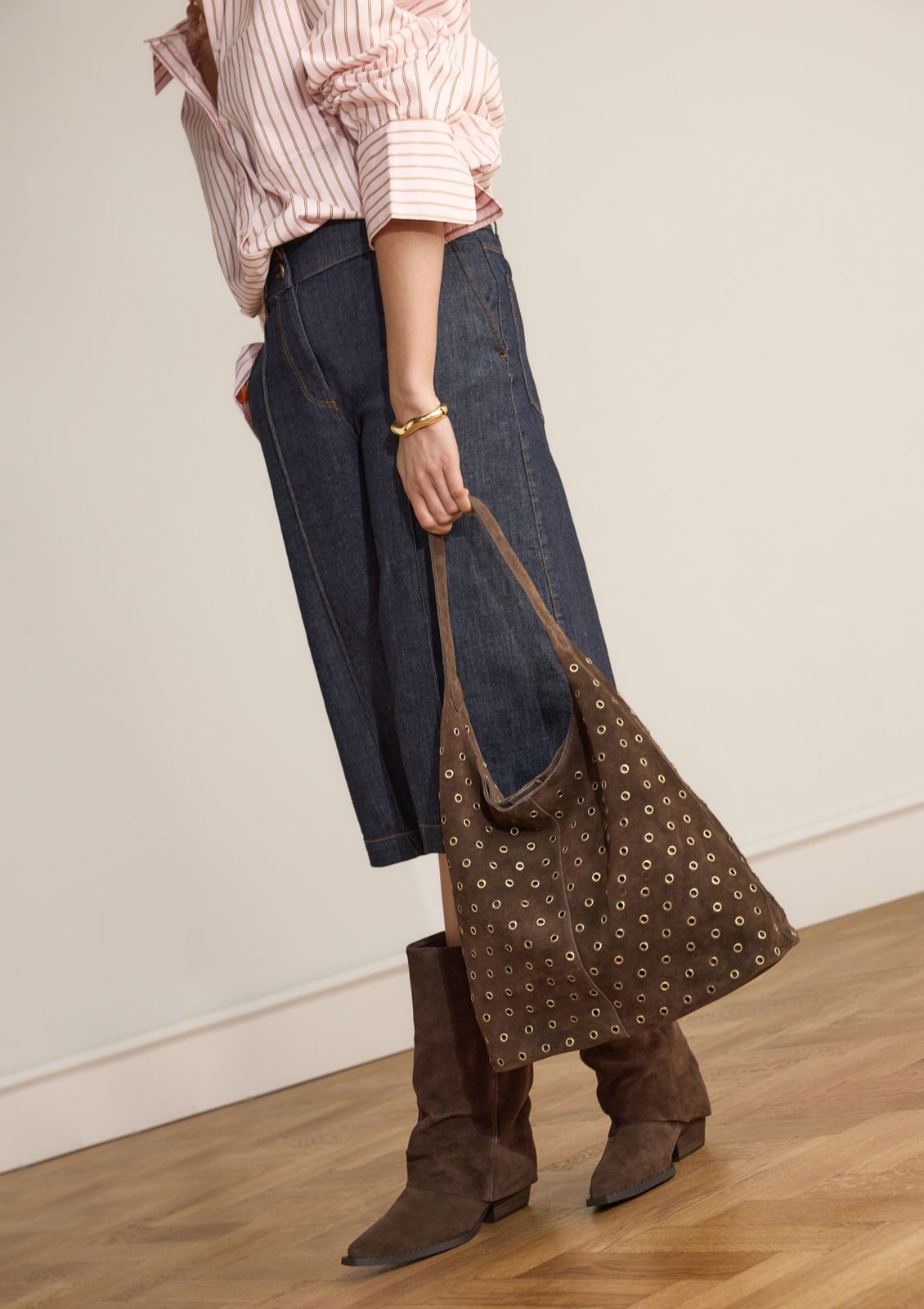 Bruine suède shopper met studs