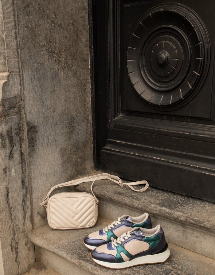 Met een paar sportieve sneakers in een metallic kleur zit je dit najaar ook helemaal goed. Metallics voegen een opvallende en shiny touch toe aan je outfit. Zo kun je een tweedelig beige pak opfleuren met comfortabele sneakers met zilveren en brons details eronder.