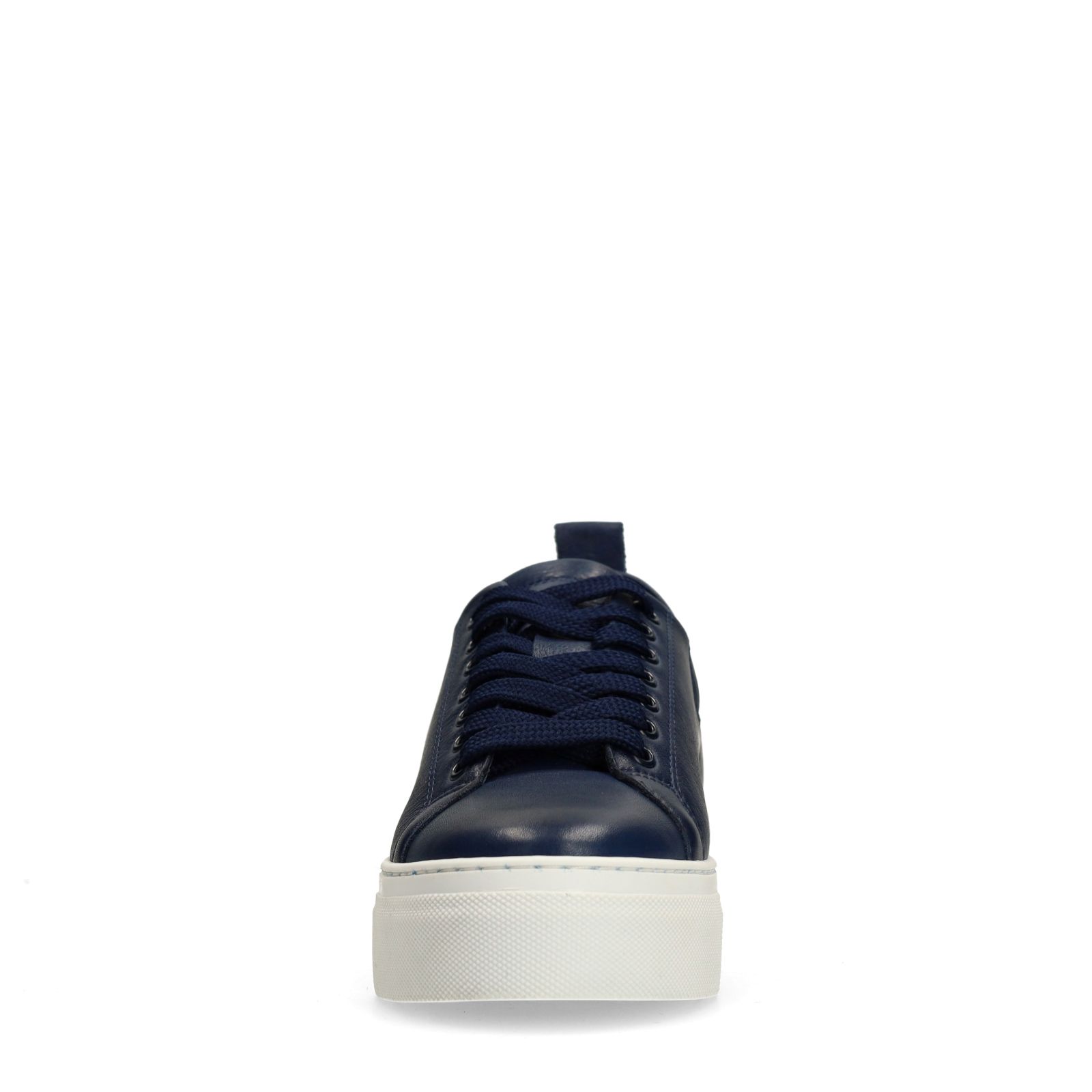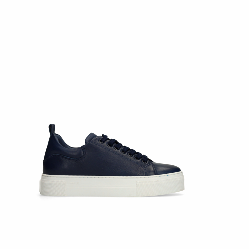 Elegante donkerblauwe leren sneakers van Manfield, conform de eisen van de luchtvaartmaatschappij. De sneakers hebben een uitneembare latex leren inlegzool, met witte plateau zool van 4 cm. Verkrijgbaar in maat 36 t/m 42. We adviseren als bescherming en verzorging de Collonil Carbon pro. Geproduceerd in Portugal in samenwerking met de wensen van de stewardessen zelf.