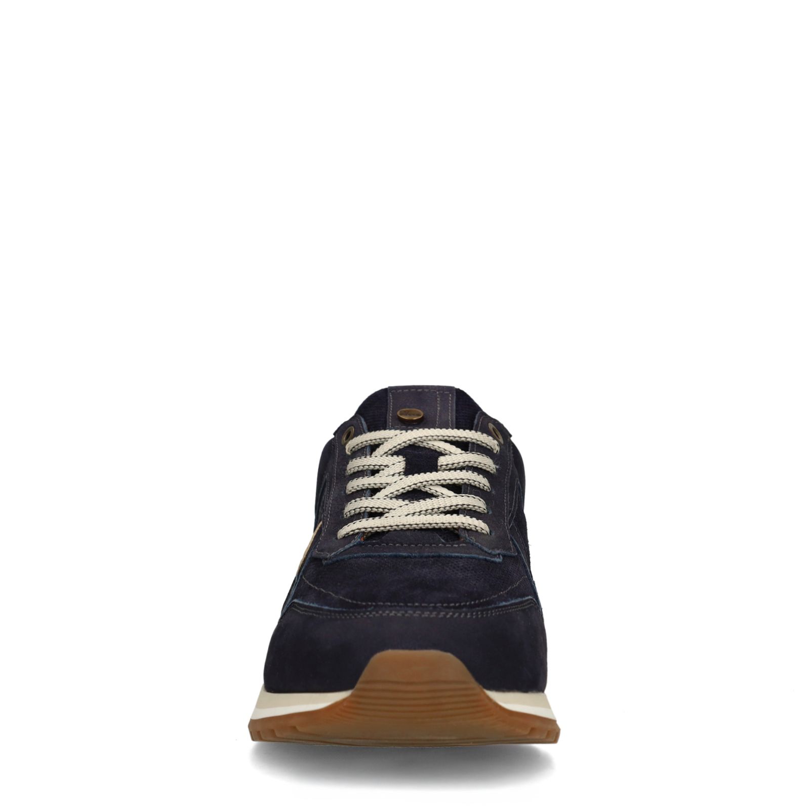 Donkerblauwe nubuck sneakers van No Stress. De sneakers hebben een memory foam voetbed, een lichte zool van 3 cm en een cognac detail op de achterzijde. We adviseren als verzorging en bescherming de suède/nubuck spray in transparant.