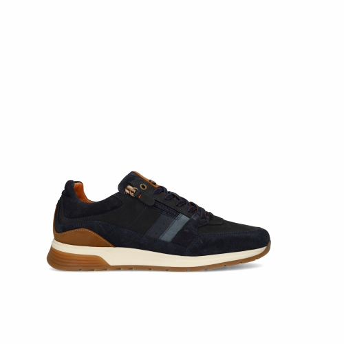 Donkerblauwe nubuck sneakers van No Stress. De sneakers hebben een memory foam voetbed, een lichte zool van 3 cm en een ritsdetail aan de zijkant. We adviseren als verzorging en bescherming de suède/nubuck spray in transparant.