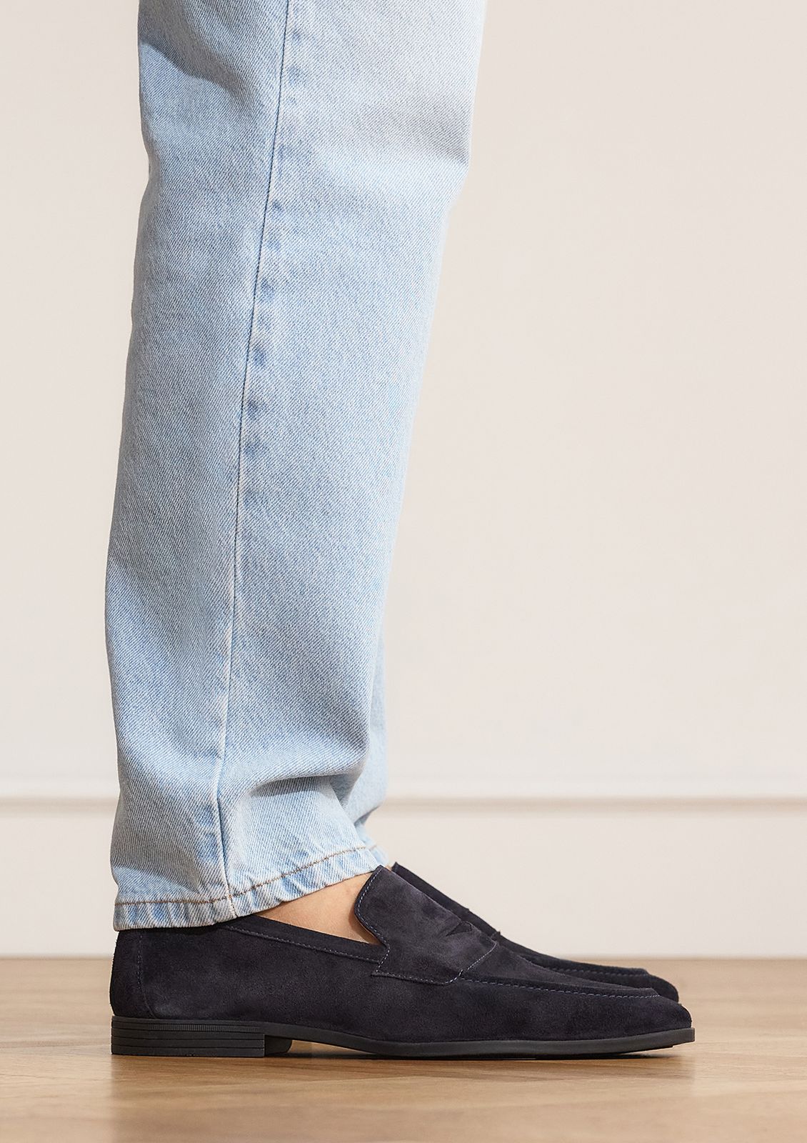 Donkerblauwe suède loafers