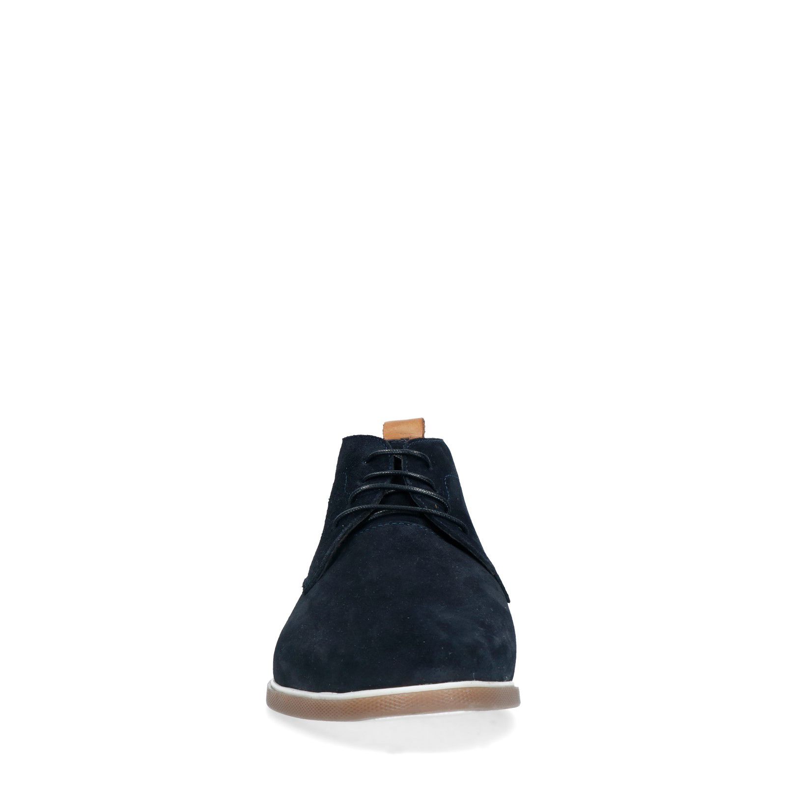 Donkerblauwe suède veterboots van het merk Manfield. Een paar mooie veterboots is onmisbaar in jouw garderobe. Bijzonder aan dit exemplaar is de bruine rubberen zool. De buitenkant is gemaakt van suède en de binnenkant van leer. Draag de veterboots met een pak, mooie chino of nette jeans. Maak gebruik van de juiste onderhoudsproducten om de schoenen zo lang mogelijk mooi te houden.