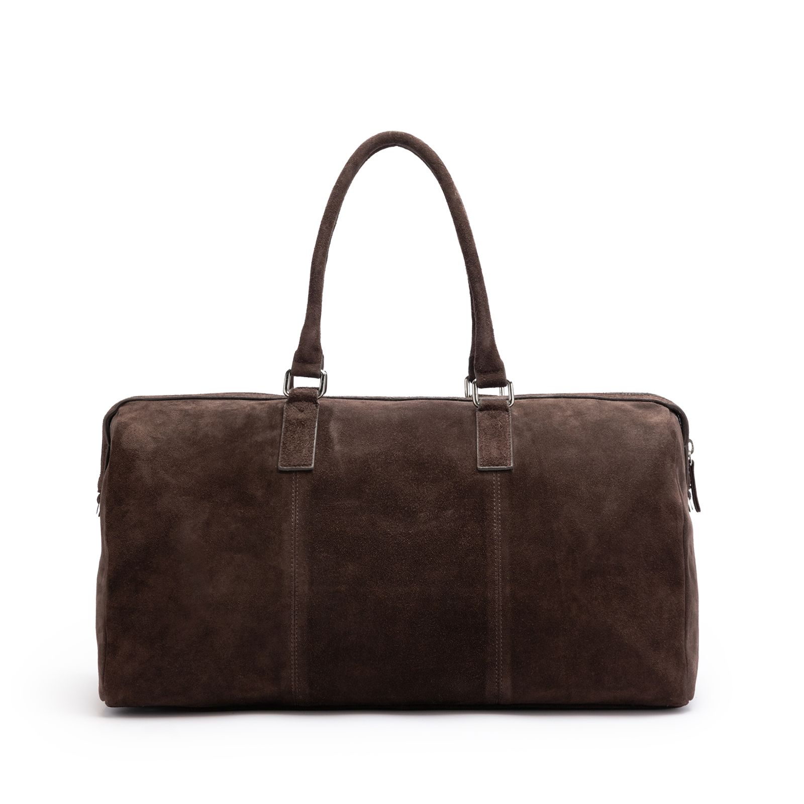 Donkerbruine suède weekendtas van Manfield met leren details. De weekendtas heeft twee handvaten en de afmeting is 51x29x27 cm, (BxHxD). We adviseren als verzorging en bescherming de suède/nubuck spray in Transparant.