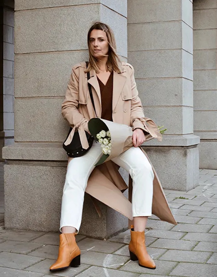 Witte broeken zijn weer helemaal terug in de mode! Zo’n witte broek staat fantastisch met okergele schoenen. Zou houd je je look namelijk nog wel rustig, maar de okergele schoenen (of accessoires) geven de look dan nét iets meer pit.