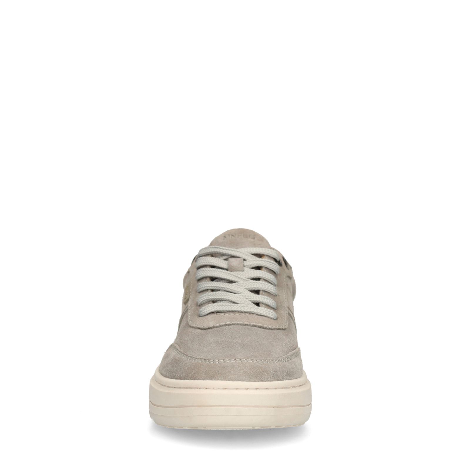 Grijze suède sneakers van Manfield. De sneakers hebben een witte zool van 4 cm. We adviseren als verzorging en bescherming de suède/nubuck spray in transparant.