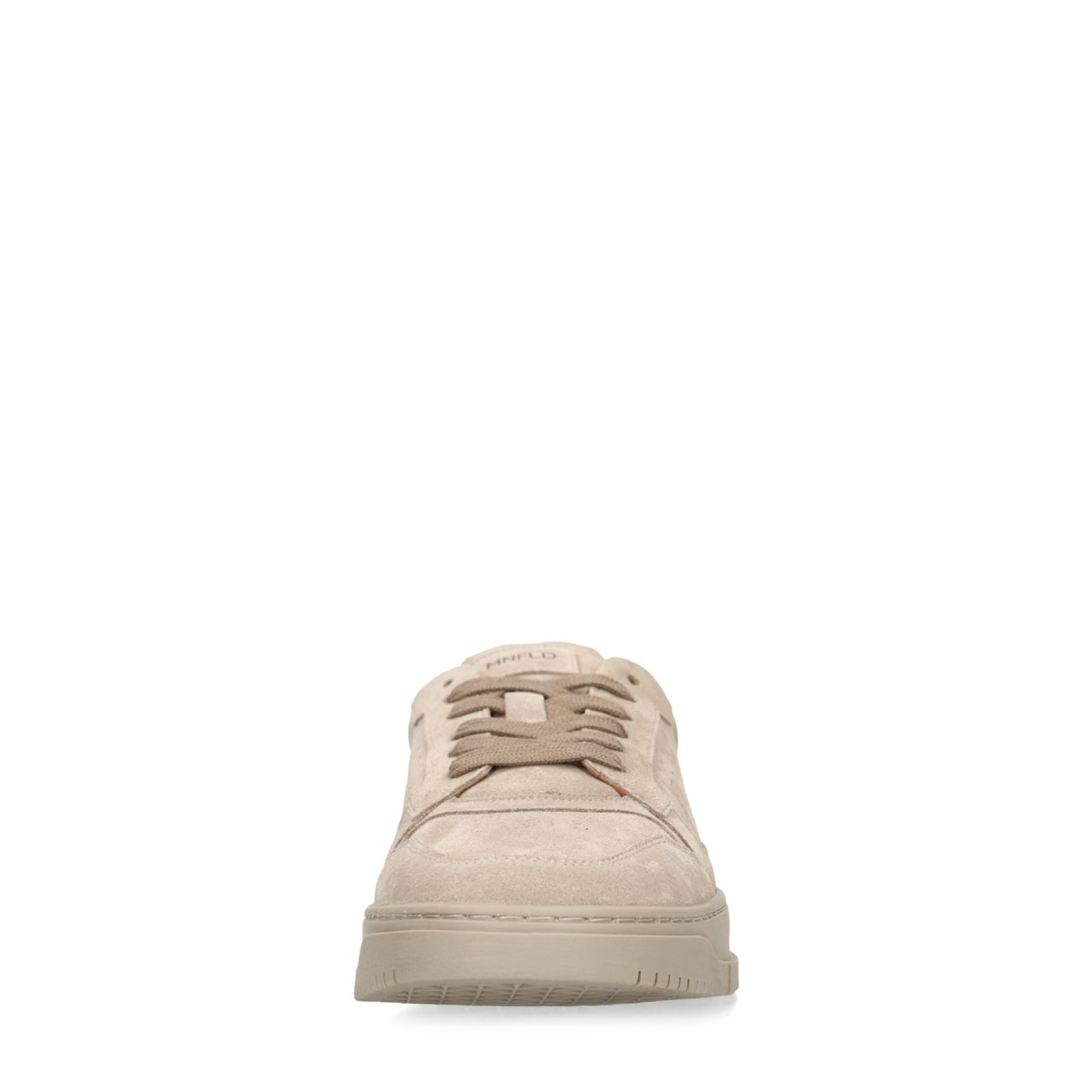 Grijze suède sneakers van Manfield met een zool van 4 cm. We adviseren als verzorging en bescherming de Collonil Carbon Pro.