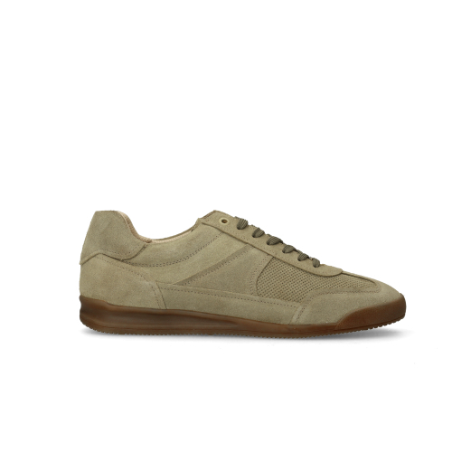 Groene suède sneakers van Manfield. De sneakers hebben een donkere zool van 3 cm en hebben een goudkleurig detail aan de veters. We adviseren als verzorging en bescherming de Suède/nubuck spray in transparant.
