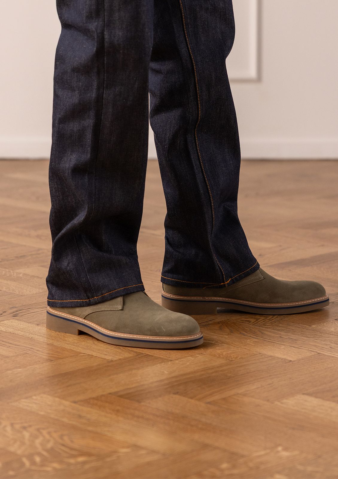 Groene suède veterschoenen van Manfield met een platte hak van 4 cm. We adviseren als verzorging en bescherming suède/nubuck spray in transparant.