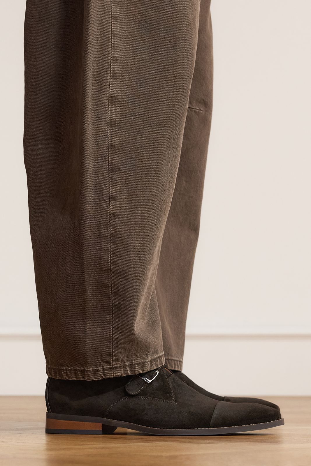 Zwarte gespschoenen van het merk Manfield. De buitenkant is gemaakt van suède en de binnenkant van leer. Je kunt de schoenen sluiten middels de twee zilverkleurige gespen. De schoenen bestaan uit meerdere patronen, wat ervoor zorgt dat ze ook casual aan kunnen. Draag ze onder een mooie jeans of pantalon in combinatie met een overhemd. Maak gebruik van de juiste onderhoudsproducten.