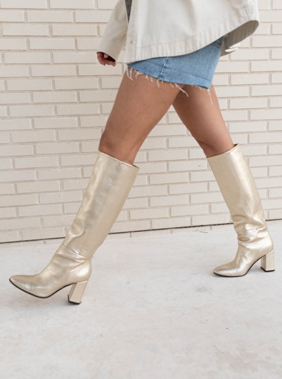 Voor de look hebben we gekozen voor een rok en blazer in dezelfde kleur. De kokerrok zorgt voor een mooi contrast in de outfit. De look maken we af met een paar sneakers met teddy detail en bruintinten. Hierdoor krijgt deze businesslook een meer trendy uitstraling. Maak deze look compleet met onze goudkleurige sieraden en een handige shopper.