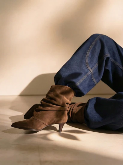 Dit voorjaar maakt één silhouet een comeback: de afzaklaars. Nonchalant, vrouwelijk en onweerstaanbaar chic. Bij Manfield zien we de slouchy laars terug in haar meest elegante vorm, een mooie spitse verfijnde neus, een elegante hak, en in rijke suède neutral tinten.