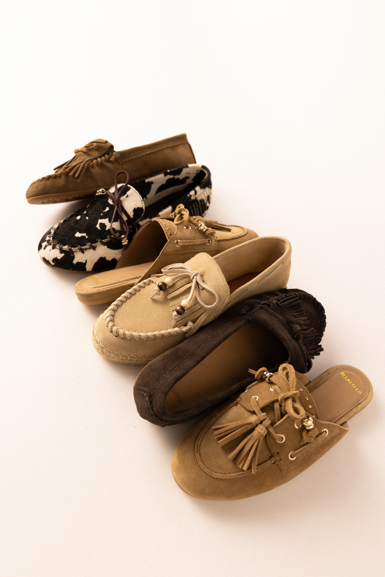 Dit seizoen maakt één klassieker een stijlvolle comeback: de boatloafer. Ooit ontworpen voor grip op het dek, nu uitgegroeid tot een onmisbare modefavoriet. Bij Manfield zien we de bootschoen terug in een verfijnde moderne uitvoering met zachte suède materialen, subtiele details en tijdloze natuurtinten die moeiteloos passen bij elke lentelook. Ontdek de nieuwe collectie!