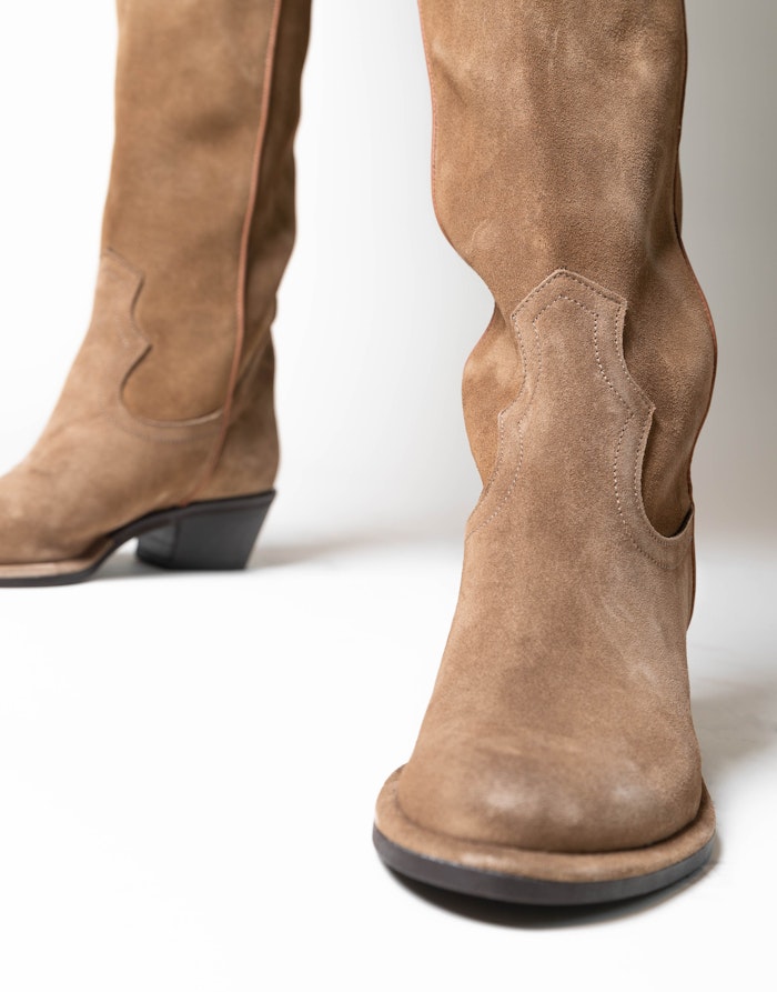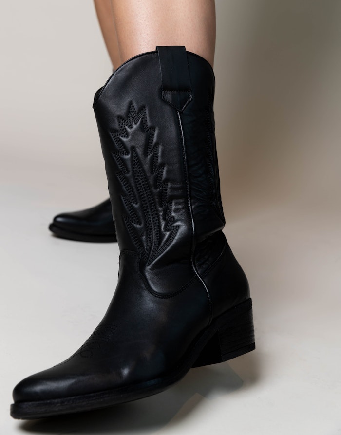 Het echte western gevoel krijg je door de nieuwe cowboylaarzen van Manfield. De cowboy laarzen van Manfield zijn er in verschillende kleuren, materialen en hoogtes. We starten met een introductie van de lage suède cowboylaarsjes, welke allemaal zijn voorzien van een schuine hak. Sommige van onze cowboy laarzen zijn voorzien van een korte ritssluiting, welke ervoor zorgt dat je de cowboy laarzen in een snelheid kunt aantrekken. Alle cowboy laarzen die niet voorzien zijn van een ritssluiting, zijn gemaakt van een soepel materiaal waardoor de laarzen alsnog gemakkelijk aan- en uit te trekken zijn. De middelhoge cowboy laarzen hebben een gemiddelde hoogte van 15 cm en zijn voorzien van een lage blokhak. De punt vormige neus zorgt voor een echt western gevoel. De hoge cowboy laarzen zijn beschikbaar in offwhite, beige, cognac en zwart en zijn gemaakt van leer of suède. De unieke stiksels in de cowboy laarzen zijn handgemaakt en zorgen voor nét dat beetje extra.