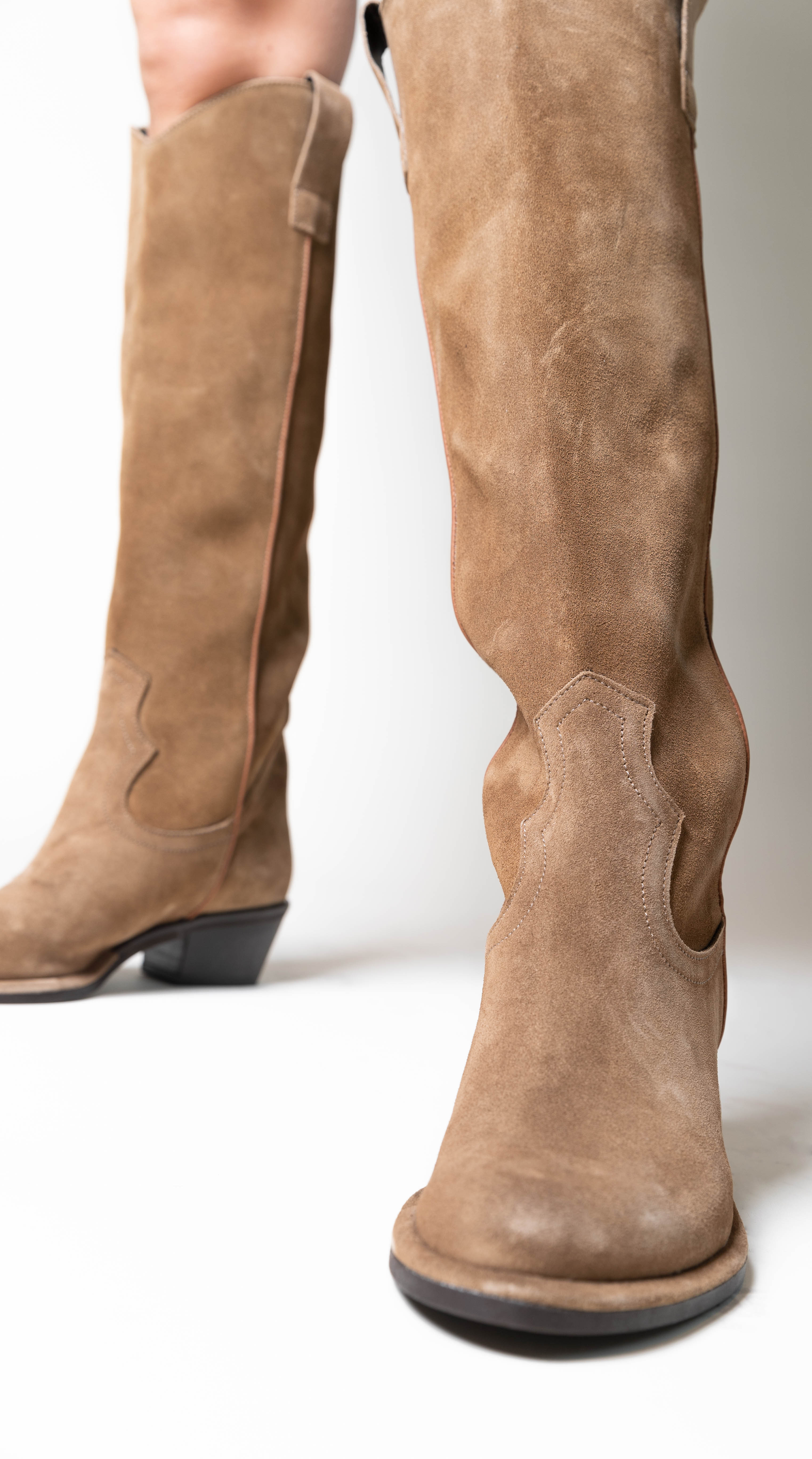 Het echte western gevoel krijg je door de nieuwe cowboylaarzen van Manfield. De cowboy laarzen van Manfield zijn er in verschillende kleuren, materialen en hoogtes. We starten met een introductie van de lage suède cowboylaarsjes, welke allemaal zijn voorzien van een schuine hak. Sommige van onze cowboy laarzen zijn voorzien van een korte ritssluiting, welke ervoor zorgt dat je de cowboy laarzen in een snelheid kunt aantrekken. Alle cowboy laarzen die niet voorzien zijn van een ritssluiting, zijn gemaakt van een soepel materiaal waardoor de laarzen alsnog gemakkelijk aan- en uit te trekken zijn. De middelhoge cowboy laarzen hebben een gemiddelde hoogte van 15 cm en zijn voorzien van een lage blokhak. De punt vormige neus zorgt voor een echt western gevoel. De hoge cowboy laarzen zijn beschikbaar in offwhite, beige, cognac en zwart en zijn gemaakt van leer of suède. De unieke stiksels in de cowboy laarzen zijn handgemaakt en zorgen voor nét dat beetje extra.
