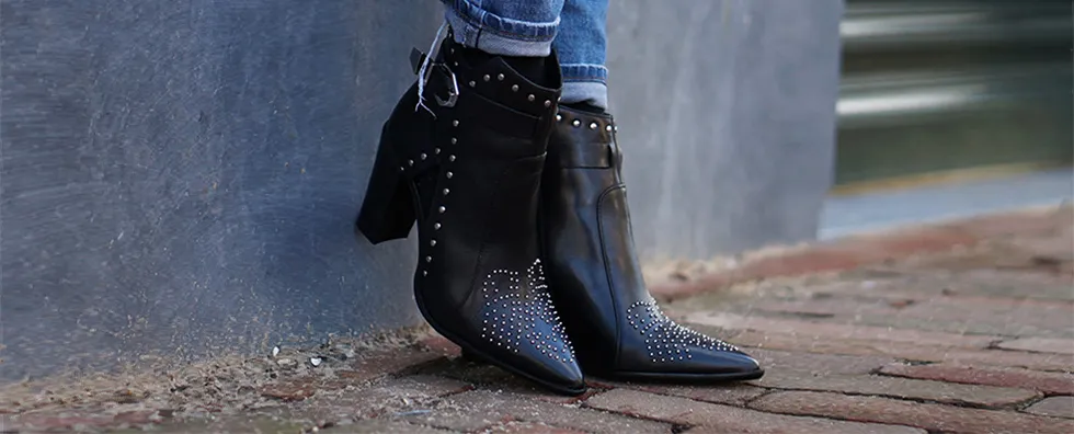 Schoenen met studs staan bekend om hun stoere karakter en edgy vibe. Combineer jouw studded enkellaarsjes met hak met een zwarte jeans en t-shirt voor een casual look met een stoer randje. Ga jij voor een op en top stoere look? Kies van voor laarsjes met hak met studs én gespen. Combineer de stoere boots met ripped jeans, t-shirt en leren of spijker jack en ben gegarandeerd helemaal on-trend.