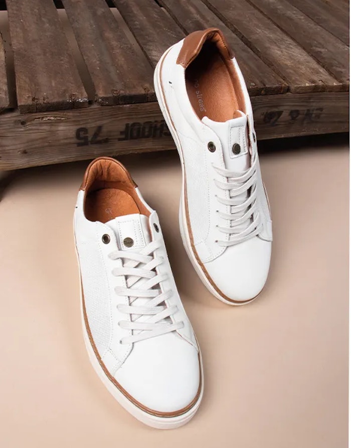 Met stipt op nummer 1 staan toch wel witte sneakers. Witte sneakers zijn met alles te combineren en geven iedere outfit een frisse touch. Draag witte sneakers met een lichte jeans, t-shirt en mooie trench coat. Of draag een stoere bomberjack over je shirt en je bent good to go. Daarnaast staan witte sneakers ook prachtig onder een chino of donkere jeans.