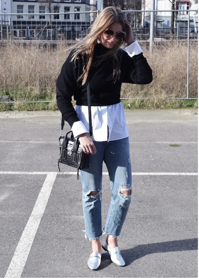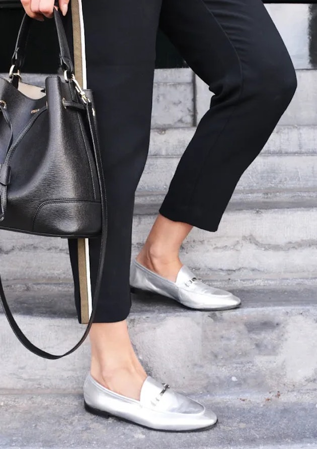 Totally on-trend: de zilverkleurige loafer in combinatie met een cropped jeans. Tijdens Fashion Week spotte ik menig it-girl en modeblogger met de metallic loafer en dat is niet zo gek, want de loafer is super comfortabel. Ik combineer hem het liefste met een gerafelde jeans voor een streetstyle vibe.