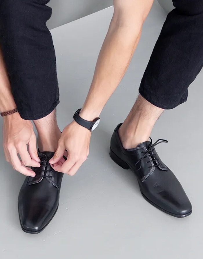 Oscar heeft gekozen voor een semi-casual look. Deze heren schoenen zijn veterschoenen van Manfield en gecombineerd met cropped jeans. Een trend die ik ook super leuk vind staan bij mannen! Om de look af te maken is het leuk om een horloge toe te voegen of een 'brocelet' te dragen (een leuke woordgrap van Oscar om een armband wat mannelijker te maken, haha).