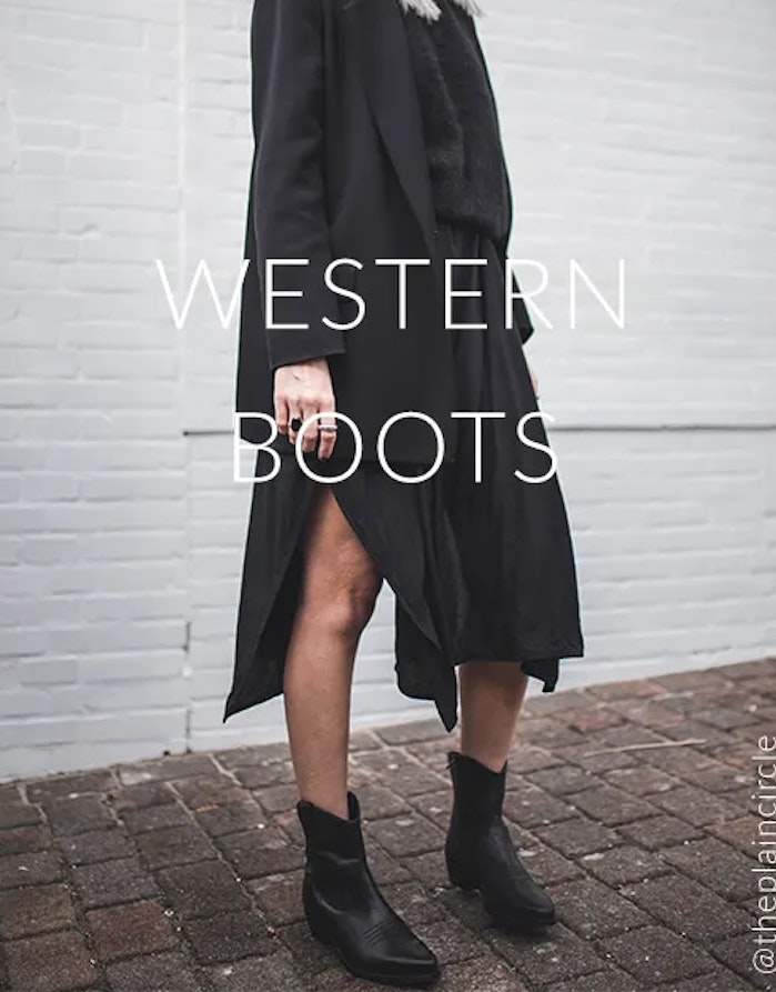 Stipt op nummer één staan cowboylaarzen. Op elke hoek van de straat ga je deze stoere boots zien. Of je nu kiest voor korte cowboylaarzen of voor een stoere hoge variant, cowboy boots horen thuis in jouw schoenencollectie! Draag de laarzen onder je favoriete jurk of met een mooie jeans.