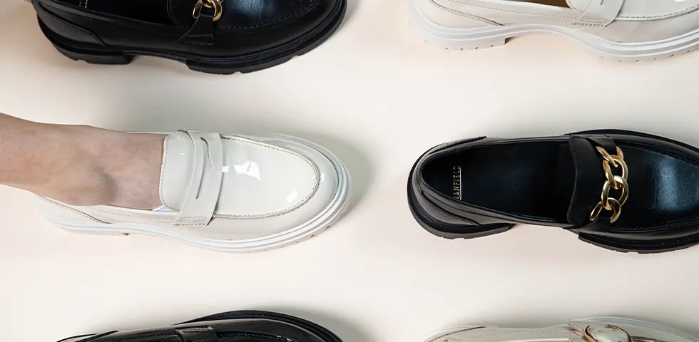 1. Te kiezen voor een bredere neus. Zoals bijvoorbeeld een ronde, platte of carré neus om de breedte van de voet visueel te vergroten. Ga voor sneakers of loafers met een brede neus!