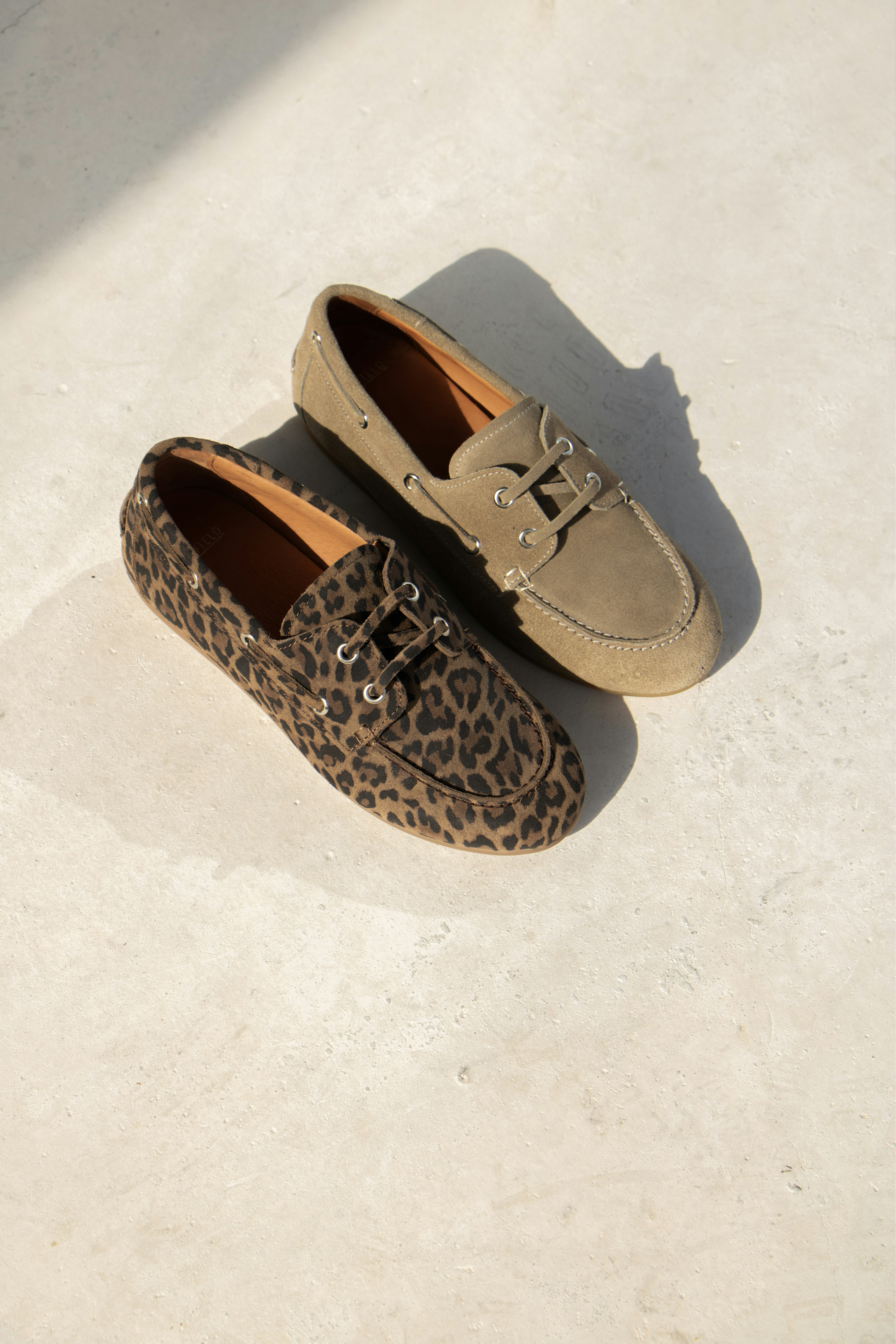 De bootschoen is terug — maar dan met een zomerse twist. Suède maakt deze iconische schoen zachter, lichter en stijlvoller dan ooit. Kies voor zachte natuurtinten als beige, bruin of ga voor een rijke animal print en combineer ze met een linnen broek of bermuda. De perfecte balans tussen casual en chic.
