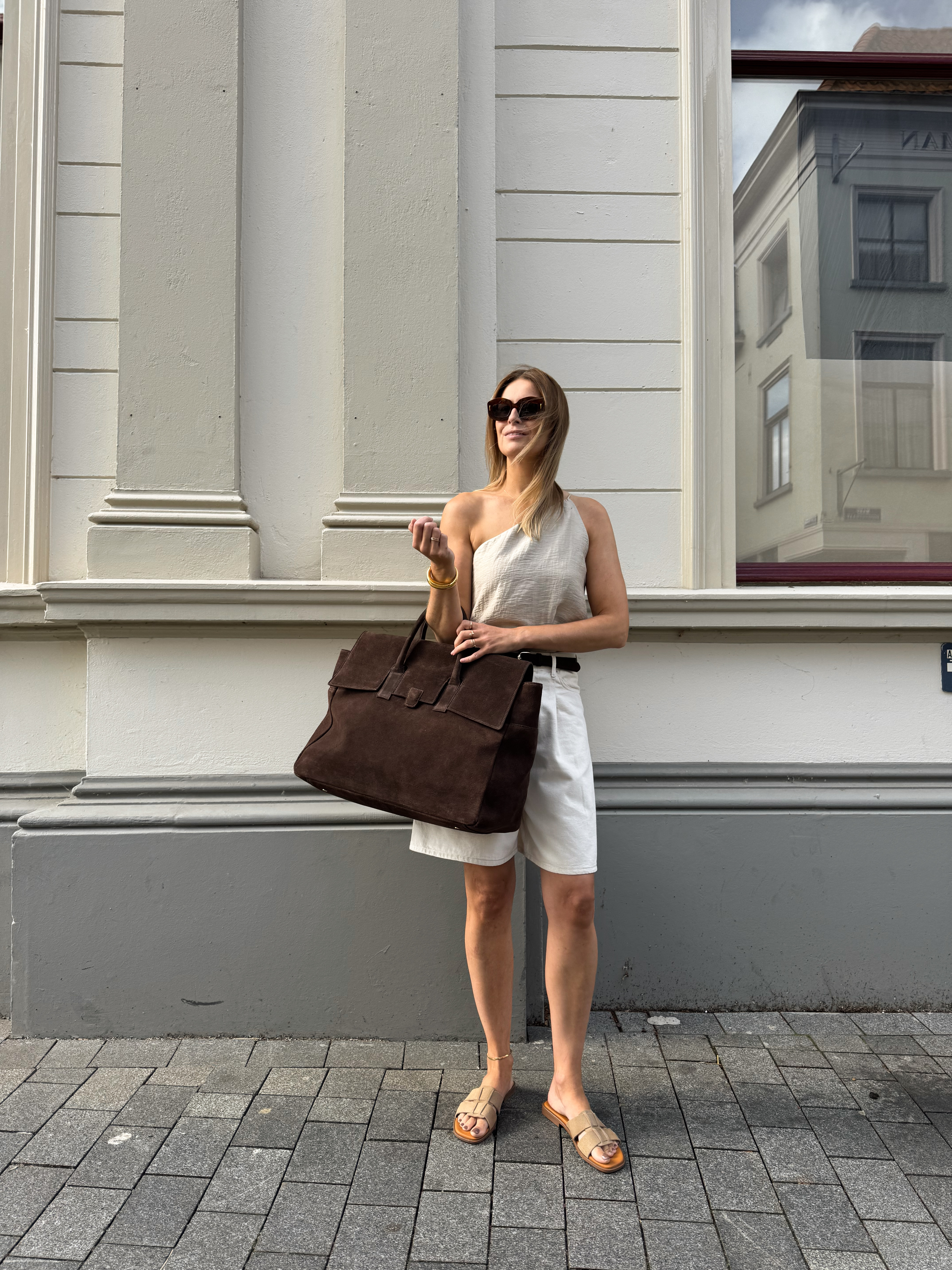 Een fijne suède tas is een all-time finishing touch voor je zomer garderobe. Bij Manfield shop je de perfecte shoppers waar al je essentials inpassen tot nonchalante crossbody’s. Een belangrijk element wat je vaak terug ziet komen bij suède tassen zijn prachtige gouden studs. Deze details geven een rijke uitstraling aan iedere tas, wat zorgt voor nét een beetje dat extra luxe. Hiernaast worden gevlochten details en franjes ook veel gespot in de mode wereld, en zo ook bij Manfield in de collectie. Combineer met een suède riem in dezelfde kleur of geef er juist een speelse twist aan met de populaire cow print riem – een trend die perfect matcht met de natuurlijke textuur van suède.