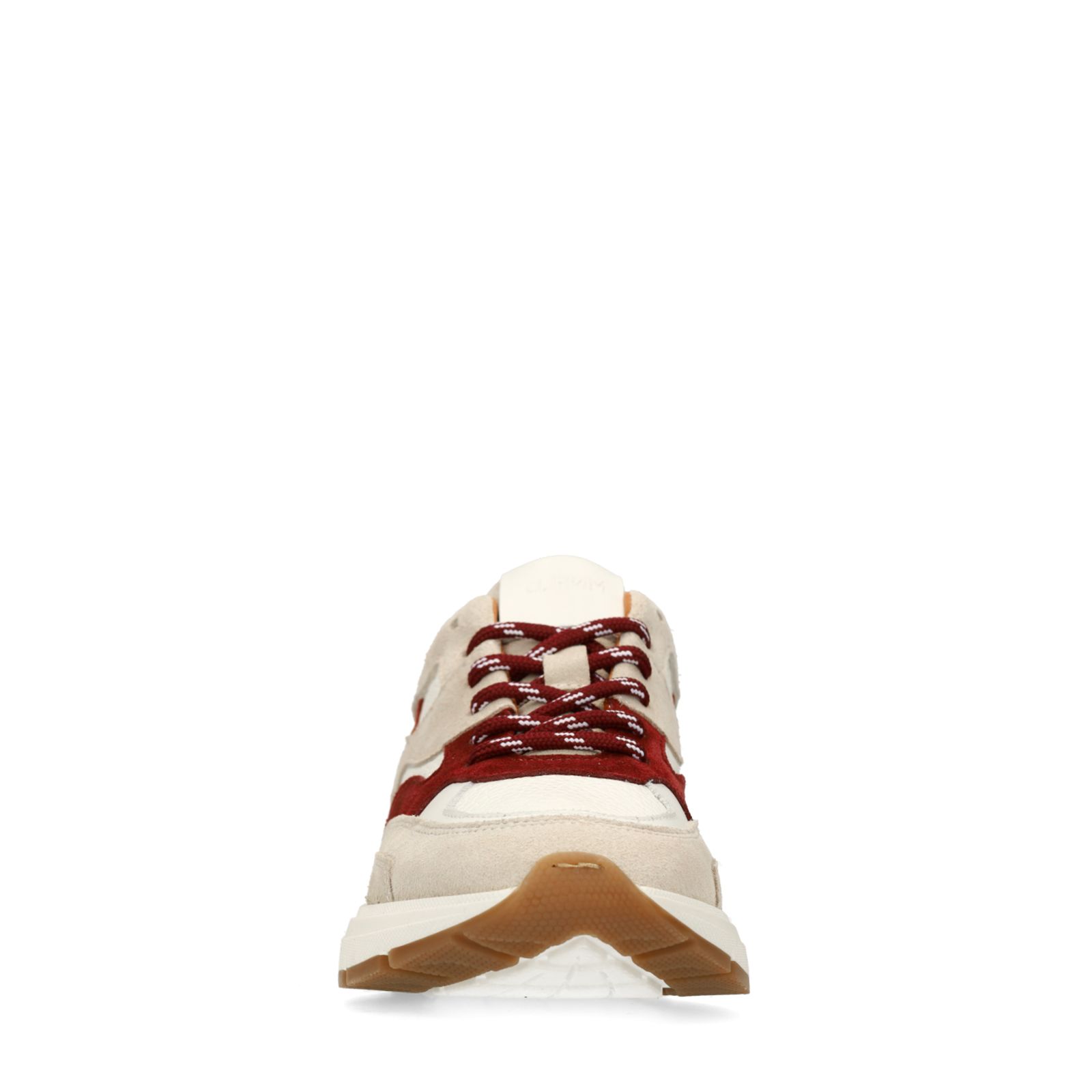 Off White leren sneakers met rode suède details van Manfield. De sneakers hebben een witte zool van 4 cm. We adviseren als bescherming en verzorging de Collonil Carbon pro.