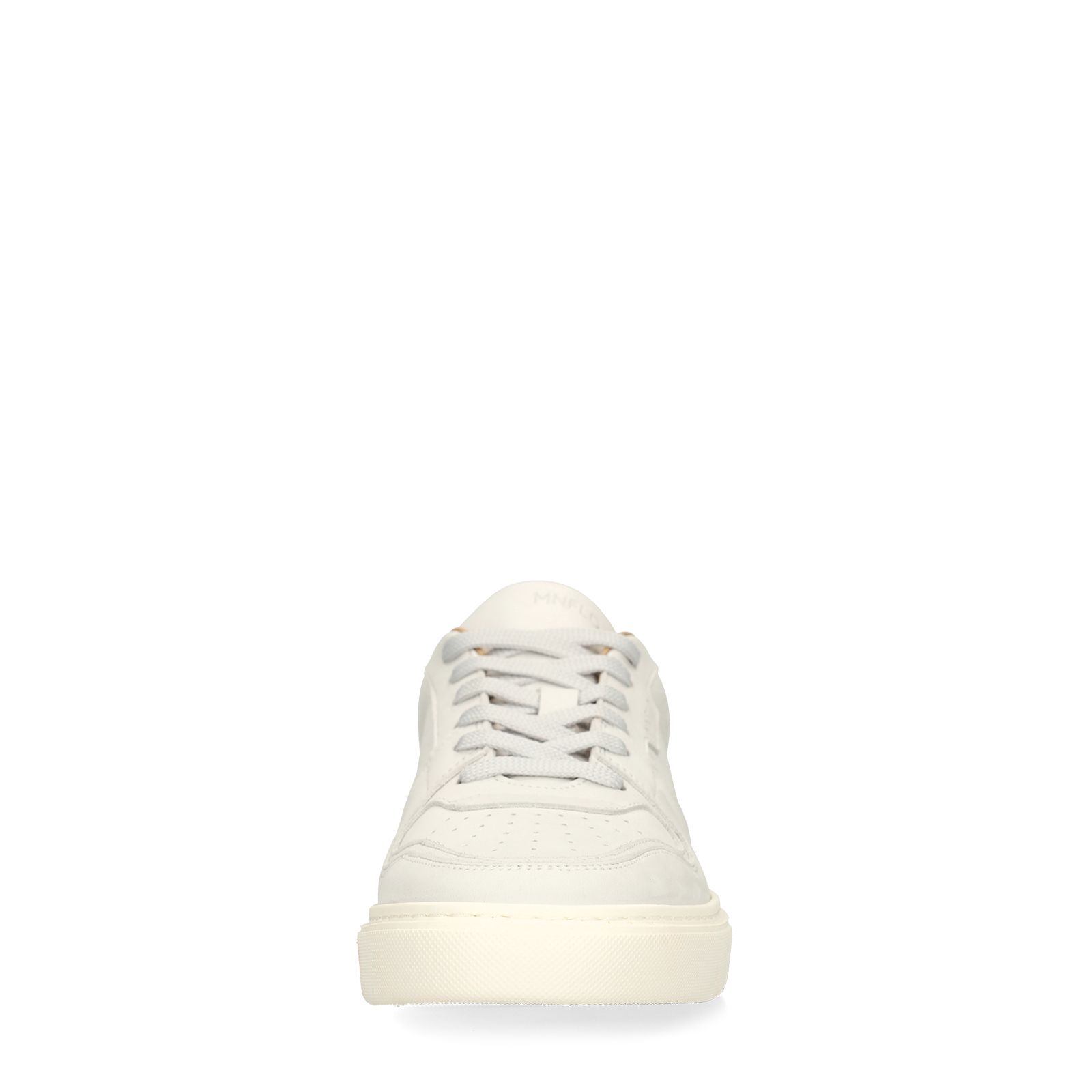 Off white nubuck sneakers van Manfield. De sneakers hebben een plateau zool van 4 cm. We adviseren als verzorging en bescherming de suède/nubuck spray in transparant.