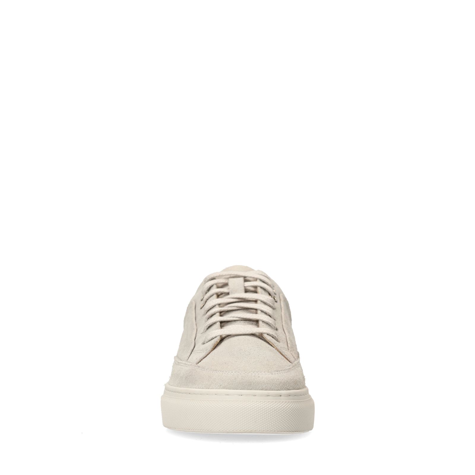 Off white suède sneakers van Manfield met een witte zool van 3 cm. De buitenkant is gemaakt van suède en de binnenkant van leer. We adviseren als verzorging en bescherming suède/nubuck spray in transparant.