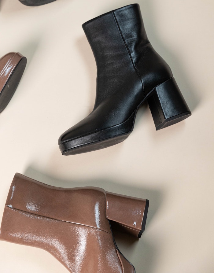 1. Kies voor een smalle neus, zoals puntige neuzen en afgeronde neuzen. Deze helpen om de breedte van de voeten te verminderen. Ga voor onze enkellaarsjes met hak en ronde afwerking in de neus of hoge laarzen met een puntige neus.