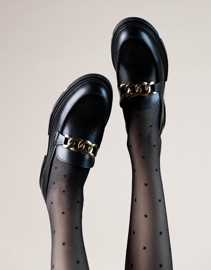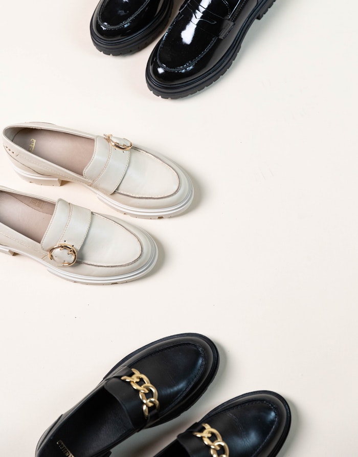 1. Te kiezen voor een bredere neus. Zoals bijvoorbeeld een ronde, platte of carré neus om de breedte van de voet visueel te vergroten. Ga voor sneakers of loafers met een brede neus!