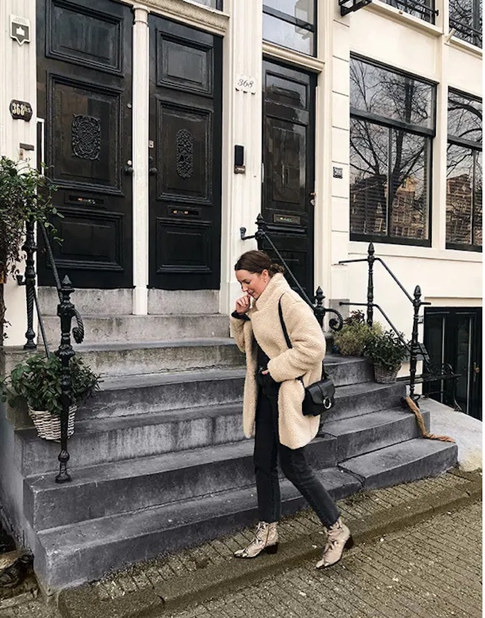 Less is more wat betreft je outfit als je een paar snakeskin schoenen draagt. Zo'n paar in het oog springende schoenen is de perfecte keuze om een basic outfit nét dat beetje extra te geven. Combineer de slangenprint laarsjes daarom dit najaar met een zwarte jeans en een oversized teddy of camel coat.