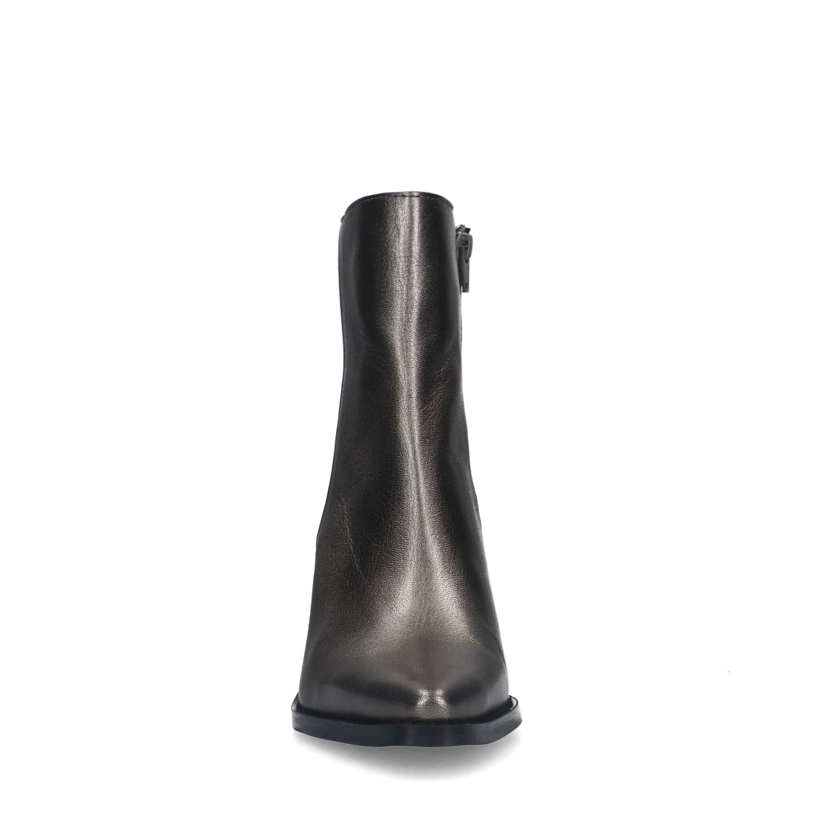 Zilveren leren cowboy laarzen van Manfield. Deze cowboy laarzen voor dames zijn gemaakt van leer en zijn voorzien van een metallic gloed, we raden je daarom aan deze cowboy laarzen te verzorgen en beschermen met de Metallic Spray. Deze cowboy laarzen zijn voorzien van een schuin afgesneden blokhak met hoogte van 7 cm.
