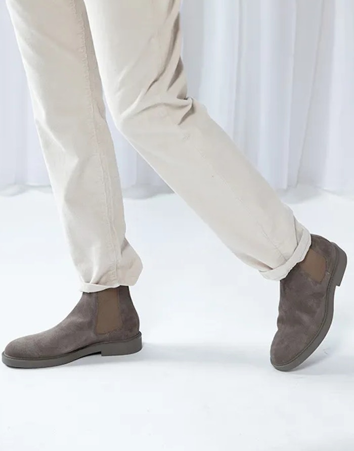 De herencollectie toont 5 topschoenen, perfect voor het tussenweertje. De selectie bevat taupekleurige schoenen met elk hetzelfde model. De schoenen zijn wat hoger boven de enkel, waardoor de schoenen warmte bieden maar ook perfect te dragen zijn in de zomer door het luchtige materiaal. Deze boots zijn ook Renwe’s favourites! Bekijk hieronder hoe hij de boots styled bij een zakelijke look, een casual outfit én voor een chique diner.