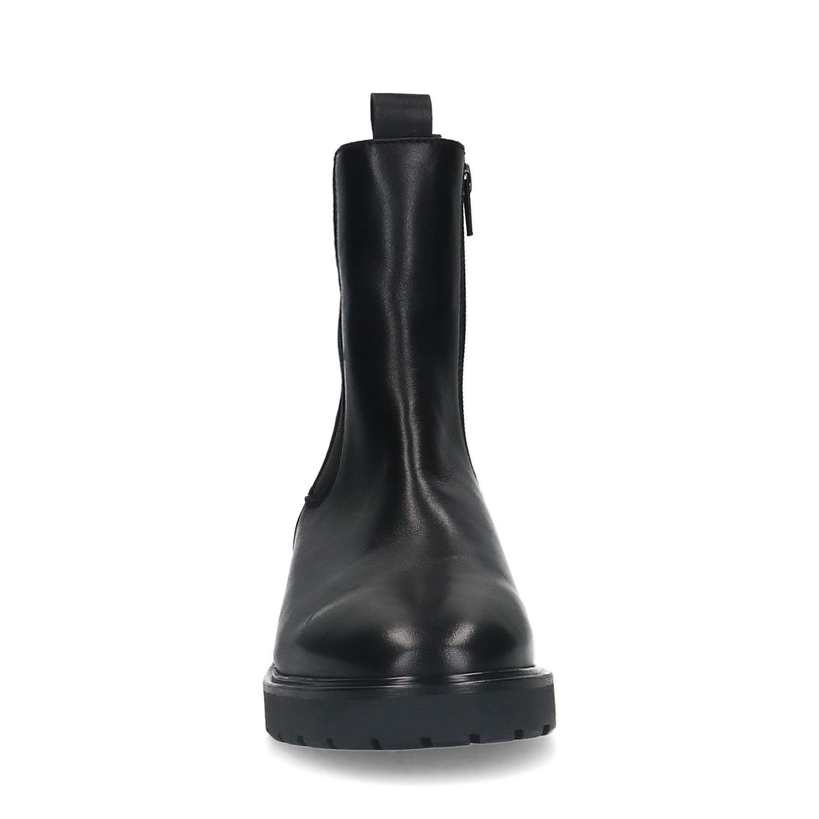 Zwarte leren chelsea boots van Manfield. Deze chelsea boots voor dames zijn gemaakt van leer en daarom raden we je aan deze dames boots te verzorgen en beschermen met de Collonil Carbon Pro. Deze boots kunnen gesloten worden door middel van een rits en de buitenzijde is voorzien van een stretch materiaal. Dit zorgt voor flexibiliteit en optimaal loopcomfort. De platte chunky zool heeft een hak met hoogte van 3 cm.