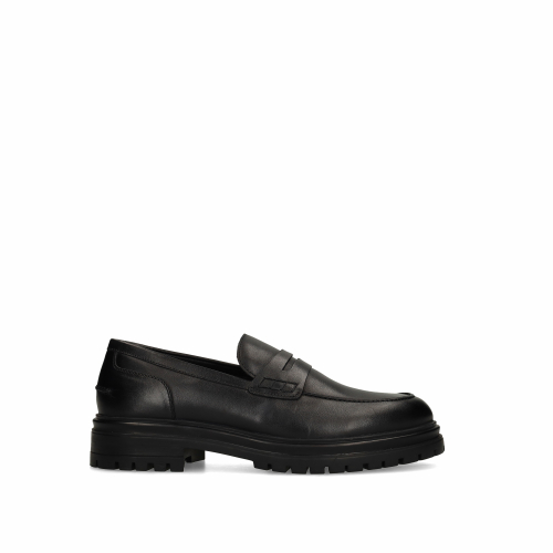 Zwarte leren loafers van Manfield. De loafers hebben een hakhoogte van 3 cm. We adviseren als bescherming en verzorging de Collonil Carbon Pro.
