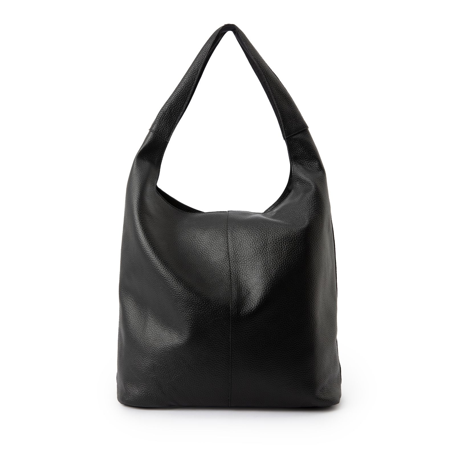 Zwarte leren shopper van Manfield. De afmeting van deze tas is 40x32x20 cm (BxHxD), de schouderband lengte is 40 cm. De tas heeft een ristsluiting met zilverkleurige details.