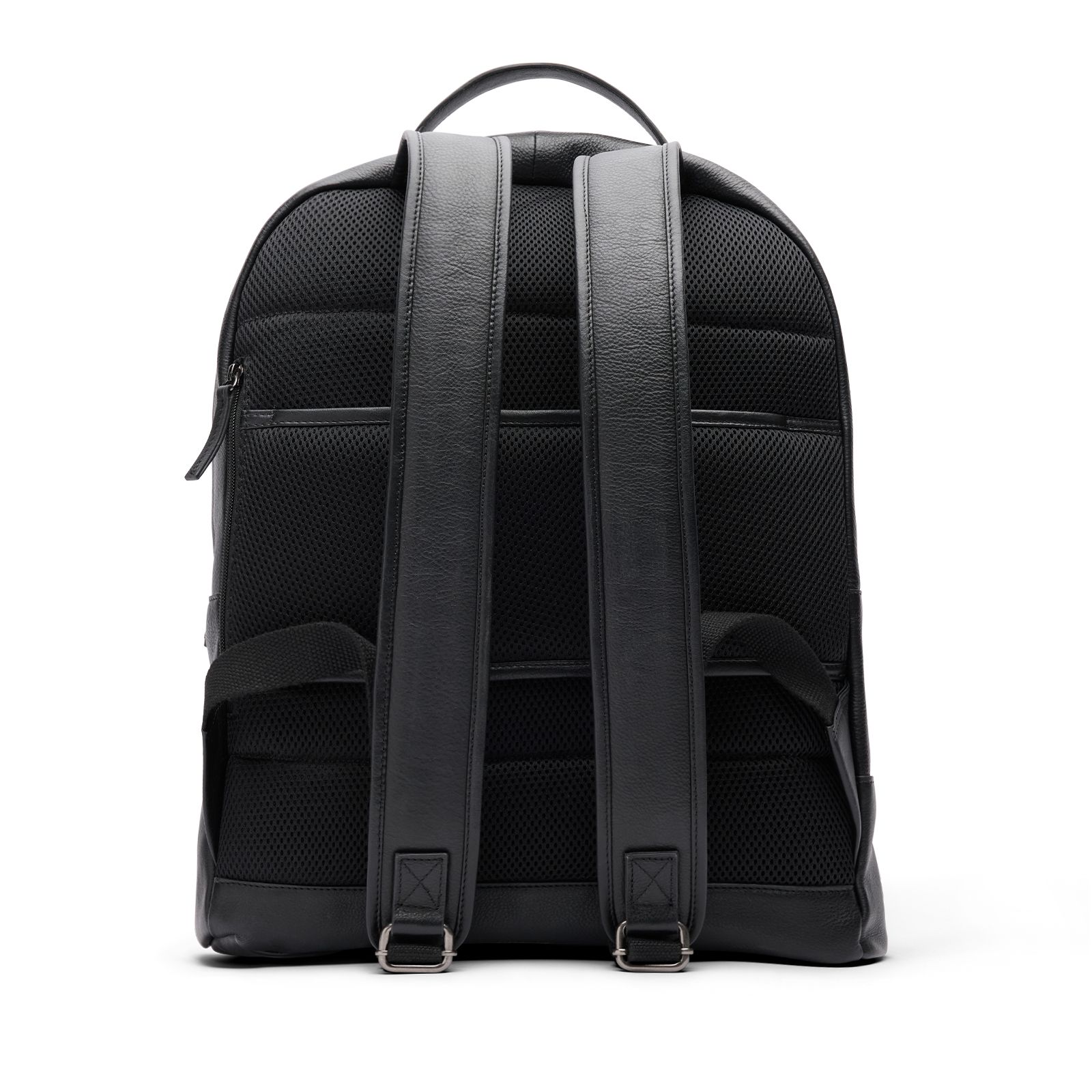 Zwarte leren unisex rugzak van Manfield met een ritssluiting, meerdere vakken en verstelbare banden voor op de rug. De afmeting van de tas is 48x44x15 cm (BxHxD). We adviseren als verzorging en bescherming de Collonil Carbon Pro.